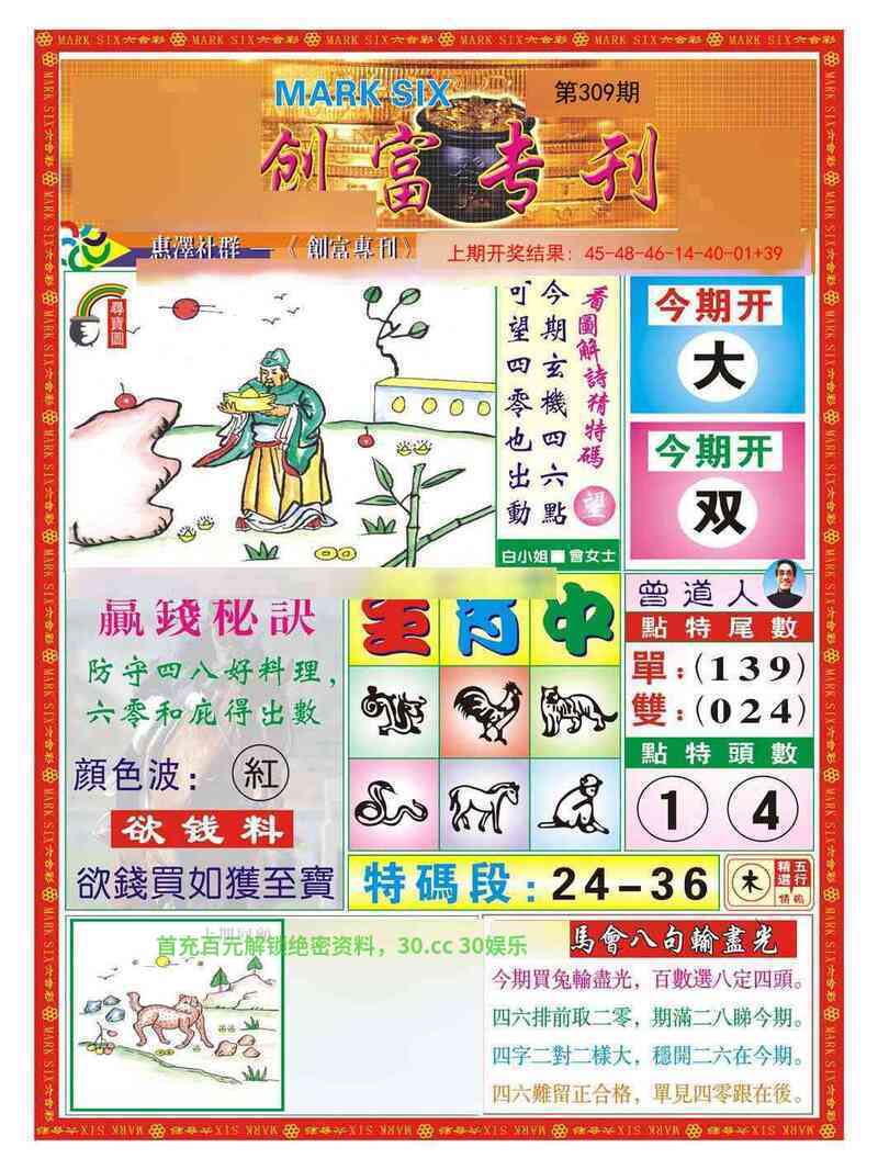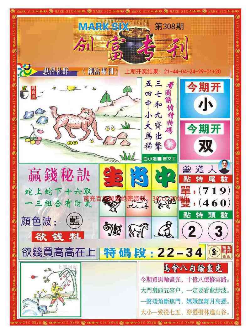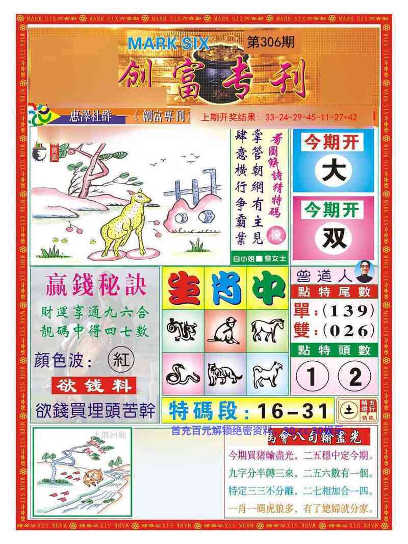 306期:正版创富网:三四组合中头彩,双数重下可防红